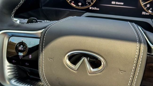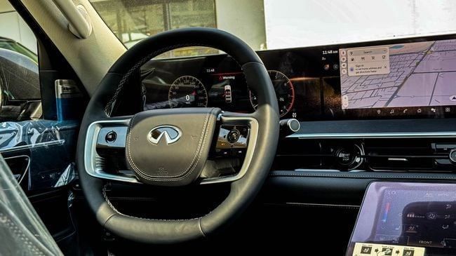 New 2026 Infiniti QX80 II, a full-size SUV finished in black, presents a commanding silhouette and refined details that suit both daily use and longer journeys. The 3.5-liter petrol V6 delivers about 450 horsepower and is paired with a smooth automatic transmission alongside all-wheel drive, offering confident acceleration and steady grip in varying conditions. The GCC-spec configuration reflects regional engineering choices while preserving Infiniti's focus on comfort and capability. Inside, the cabin emphasizes space and serenity with quality materials, adaptable seating,