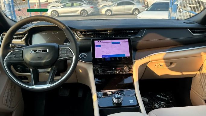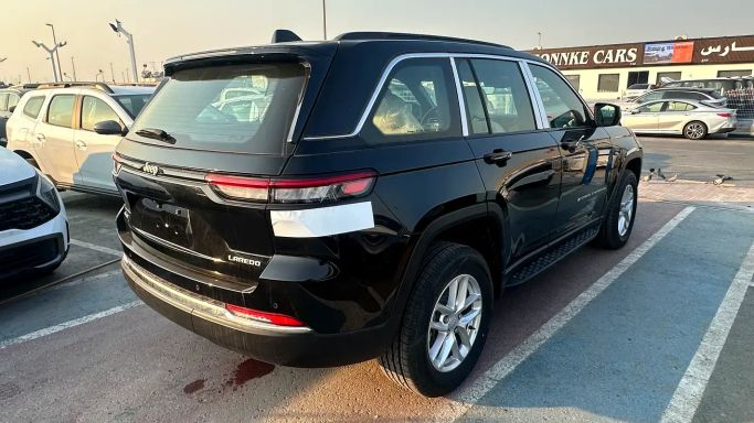 New 2025 Jeep Grand Cherokee V (WL) 5-door SUV in black, powered by a 3.6-liter petrol V6 delivering 297 hp, paired with an automatic transmission and all-wheel drive. This GCC-spec model combines confident everyday performance with a smooth, refined ride and practical interior space, along with the distinctive rugged design Jeep is known for. The 3.6 L V6 offers ample acceleration for highway merging, while the AWD system provides stable traction in varying road conditions. The latest generation designation V (WL) brings updated styling and a contemporary, premium feel tha
