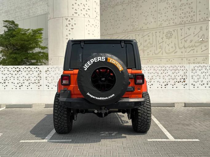 2018 Jeep Wrangler Sport– “Jeepers Edition” – Dubai Serious power. Serious presence. This 2018 Jeep Wrangler Rubicon“Jeepers Edition” is built for enthusiasts who want performance on and off the road. Tastefully upgraded and extremely well maintained. ✏️ Key Details: ✅ Year: 2018 ✅ Mileage: 126,500KM ✅ Price: AED 110,000 ✅ Specs: GCC ✅ Trim: Sport ✅ Engine: 3.6L V6 ✅ Transmission: Automatic ✅ Exterior: Orange Colour ✅ Interior: leather seats - Black ✅ Drive Type: Four Wheel Drive ✅Horsepower : 285HP ✅Upgraded suspension ✅Custom wheels & off-road tires ✅Premium exhau