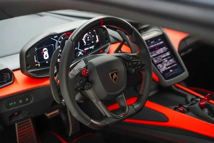 2024 LAMBORGHINI REVUELTO Make : LAMBORGHINI Model : REVUELTO Year : 2024 Regional Specs: Other Horsepower : 1015 HP Engine: 6.5L V12 NATURALLY ASPIRATED + 3 ELECTRIC MOTORS Displacement: 6498 CC Top Speed : 350 KM/H 0-100 in: 2.5 Seconds The 2024 Lamborghini Revuelto is the brand's flagship High Performance Electrified Vehicle (HPEV), combining legendary V12 power with cutting-edge hybrid technology. Its 6.5-liter naturally aspirated V12 engine works in harmony with three high-density electric motors to produce a staggering 1015 HP. This powertrain is mated to a t