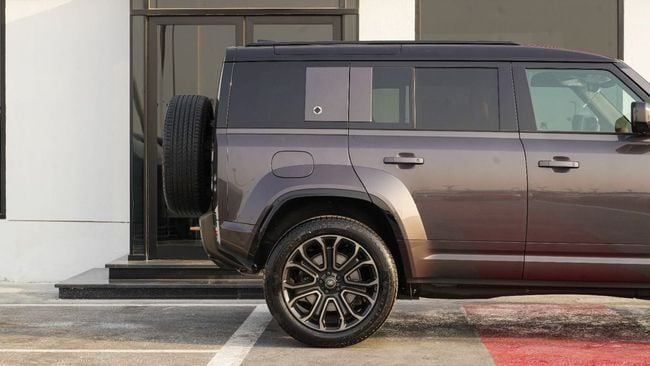 The 2025 Defender P635 OCTA V8 CHARENTE GREY sale in Dubai. Available from AKMOTORS. The Defender P635 OCTA V8 is the most powerful Defender ever made, featuring a 4.4L twin-turbo V8 mild-hybrid engine delivering 635 PS. With a bold, widened stance, advanced 6D Dynamics suspension, and exclusive “OCTA Mode,” it blends extreme off-road capability with thrilling on-road performance—all wrapped in a rugged yet refined design.