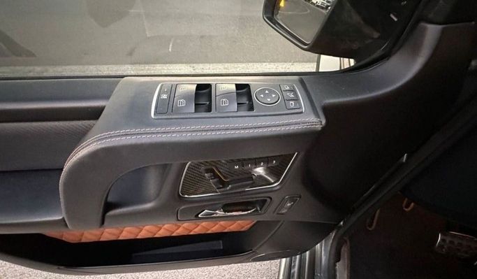 This 2016 Mercedes-Benz G-Class AMG, the W463 Facelift 3 version, is a five-door SUV featuring a powerful 5.5-liter twin-turbocharged V8 engine with an automatic transmission that develops 571 hp and all-wheel drive. The grey color is both strict and expressive, while the square body shape and high ground clearance maintain the distinctive appearance of the G-Class. The GCC specification may include special options for the region, and having a single owner with a mileage of approximately 180,000 km suggests a balanced operational history. Inside, you will find high-quality