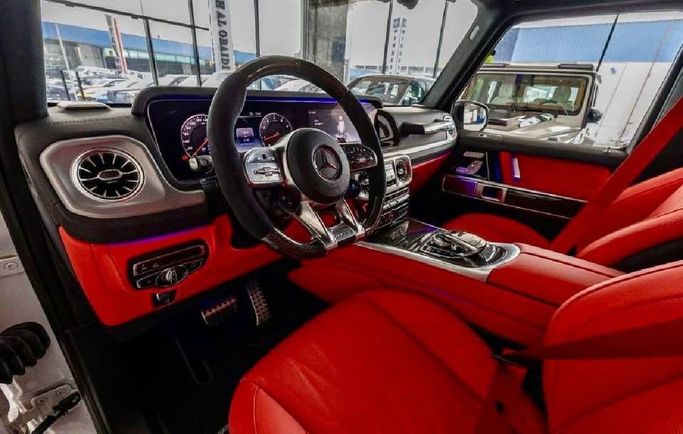 This 2024 Mercedes-Benz G-Class AMG II (W463) stands out with its bold presence in white, combining rugged SUV practicality with high-performance engineering. Powered by the 4.0-liter V8 delivering 585 hp under the 63 AMG base, it offers rapid response and confident acceleration, while all-wheel drive and a smooth automatic transmission ensure composed handling in varied conditions. With a single prior owner and only 4,400 kilometers, the vehicle remains nearly pristine, showcasing a premium cabin that balances luxury with durability. The petrol engine and Korean market spe