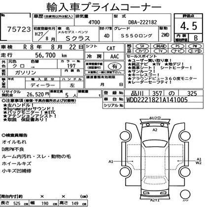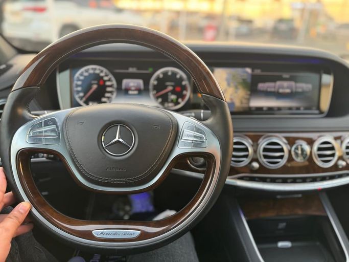 This 2015 Mercedes-Benz S-Class sedan represents the VI generation (W222/C217) and comes in a classic black finish. It is powered by a 4.7-liter petrol V8 delivering about 455 horsepower and around 500 Nm of torque, paired with a smooth automatic transmission and rear-wheel drive. With a single owner and 56,644 km on the odometer, this example shows careful use and refined aging. The Japanese-spec configuration points to equipment tuned for that market while preserving the car’s hallmark blend of quiet luxury and strong road presence. Inside, you’ll find a calm, well-appoin