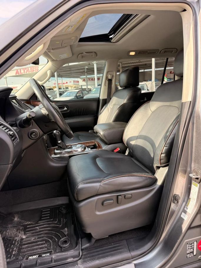 This 2019 Nissan Armada II is a robust 5-door SUV finished in grey, powered by a 5.6-liter V8 producing 390 hp and paired with a smooth automatic transmission in a rear-wheel-drive layout. With a single careful owner and about 93,478 kilometers on the clock, it carries a strong sense of durability typical of American-spec models. Inside, you’ll find a well-balanced blend of space and comfort, suited to family use or hauling larger loads, while the 5.6-liter petrol engine delivers confident road presence and steady highway performance. The Armada’s design emphasizes practica