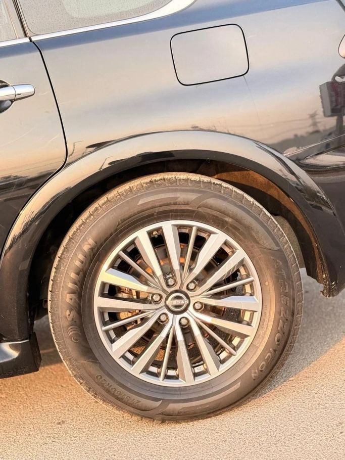 The 2021 Nissan Armada II Facelift combines substantial V8 power with a confident, refined interior, presenting as a well cared-for used SUV with a single previous owner and just under 98,800 miles. Under the hood sits a 5.6-liter petrol V8 producing 400 horsepower, paired with a 5-speed automatic transmission for smooth highway cruising and confident acceleration, while rear-wheel drive delivers a steady, engaging feel on paved roads. The exterior is a classic black finish that complements its muscular silhouette, and the interior emphasizes comfort with room for family or
