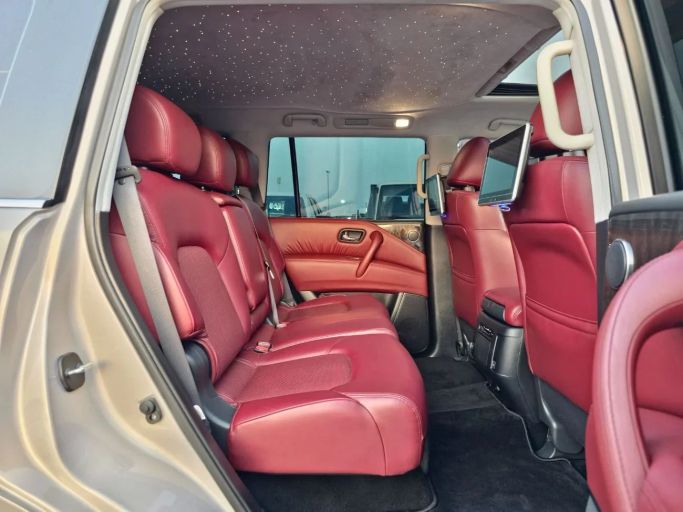 This used 2022 Nissan Patrol VI (Y62) Facelift 2 is a full-size SUV finished in Golden, powered by a 5.6-litre petrol V8 delivering 428 hp, paired with an automatic transmission and all-wheel drive. With GCC specifications and a single previous owner, it has about 120,000 km on the clock. The Patrol blends a commanding road presence with a comfortable, well-appointed interior that offers ample space for passengers and cargo, smooth highway manners, and strong acceleration when needed. Its rugged DNA and refined design support both everyday use and longer journeys, making it