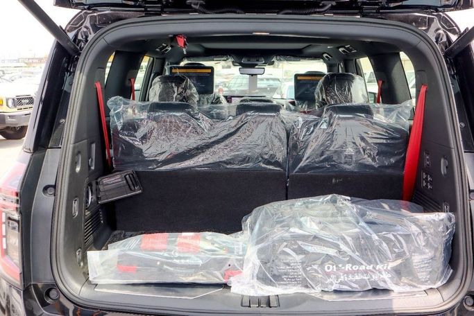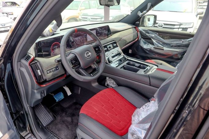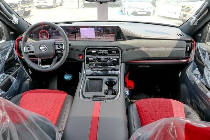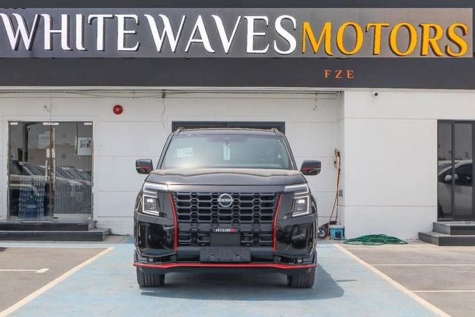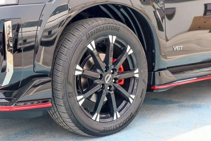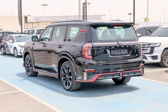 2026 Nissan Patrol NISMO 3.5L Twin-Turbo – Black Color Engine & Performance • Engine: 3.5L V6 Twin-Turbo (VR35DDTT) • Power: 454 HP @ 6,400 RPM • Torque: 520 Nm (384 lb-ft) @ 1,600–5,200 RPM • Transmission: 9-speed automatic with paddle shifters • Drivetrain: 4WD (NISMO-tuned All-Mode 4x4) • 0–100 km/h (0–62 mph): 5.8 seconds • Top Speed: 250 km/h (155 mph) (electronically limited) • Exhaust: NISMO-tuned sport exhaust with quad tips Exterior Features (Black Color) • Paint: Premium Pearl Black with NISMO red accents • Grille: Aggressive NISMO V-Motion