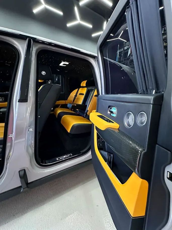 Rolls-Royce Cullinan 2023 | V12 | Black Badge | Grey Full Matte PPF Mileage: 31,000 km Specification: European Exterior: Grey (Full Matte PPF Protection) Interior: Black & Yellow Leather Engine & Performance: • 6.75L Twin-Turbo V12 • 563 HP • 850 Nm Torque • 8-Speed Automatic Transmission • All-Wheel Drive (AWD) • 0–100 km/h: ~5.2 seconds • Top Speed: 250 km/h (Electronically Limited) Condition: • 100% original condition • No paint, no accidents • Fully maintained • Engine, gearbox, and chassis in perfect condition Key Features: • Air Suspension with Adapti