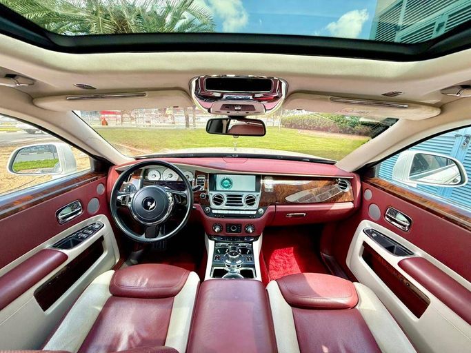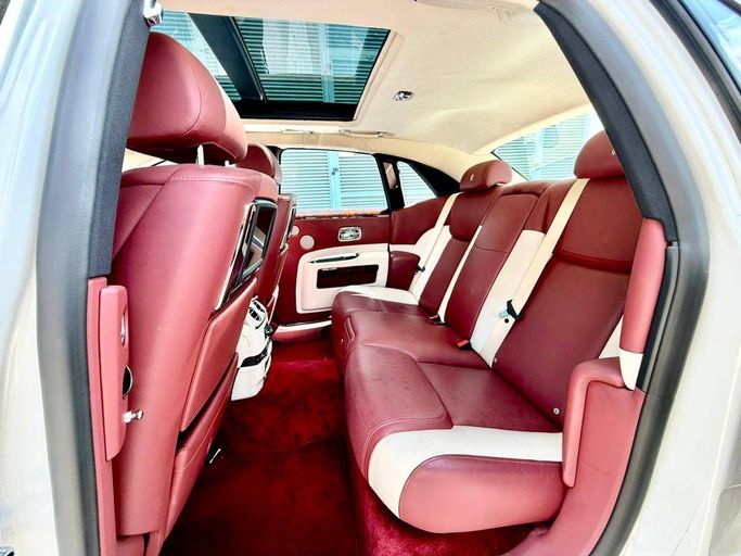 ROLLS ROYCE GHOST GCC SPECS l YEAR 2017 l l KMS: 49,000 l ?Engine: 6.6L Twin-Turbo V12 ?Power: 563 HP @ 5,250 rpm ?5-Seater Ultra Luxury Cabin ?Full Leather Interior (Bespoke options) ?Starlight Headliner ⭐ ?Rear Executive Seats (electric + massage) ?Umbrellas in doors (signature Rolls-Royce feature) ?Soft-close doors ?Rolls-Royce Infotainment System ?Navigation ?Rear Entertainment ?Adaptive Air Suspension (Magic Carpet Ride) ?Parking Sensors + Camera ?Lane Departure Warning ?Cruise Control ?Iconic Spirit of Ecstasy ?LED Headlights ?Chrome grille & trims ?Rear parkin