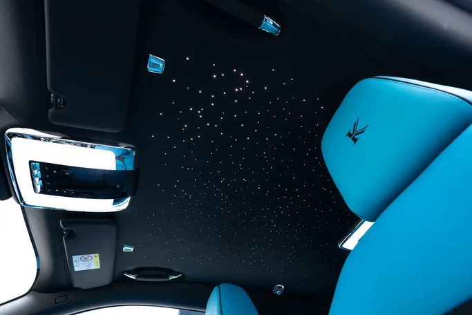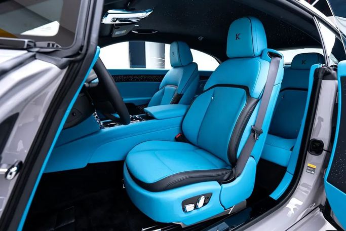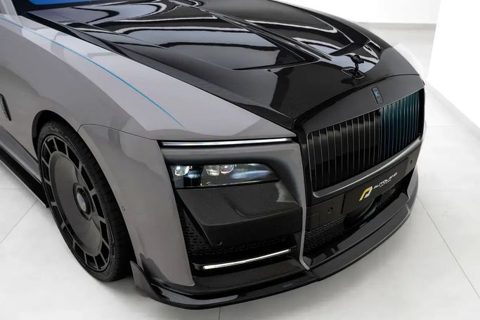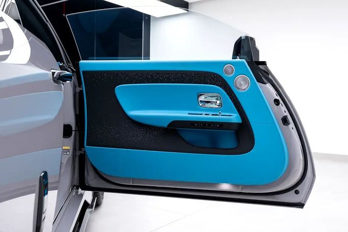 *EXTERIOR COLOUR TEMPEST GREY *INTERIOR COLOR TURCHESE BLUE/BLACK *24” SPECIAL KEYVANY BLACK POLISHED WHEELS *CARBON FIBER BONNET *CARBON FIBER FRONT BAMPER *CARBON FIBER REAR BUMPER *CARBON FIBER REAR DIFFUSER *CARBON FIBER SPOILER *CARBON FIBER SIDE MIRRORS *CARBON FIBER SIDE SKIRTS *BLACKED OUT CHROME ELEMENTS *SPIRIT OF ECSTASY IN BLACK *ILLUMINATED GRILL IN BLACK *RR MONOGRAM TO ALL HEADREST IN BLACK *EXTENDED LEATHER HEADLINER *SHOOTING STAR HEADLINER *STARLIGHT DOORS *ILLUMINATED TREADPLATE *FIXED REAR SEATS MIDDLE CONSOLE *ROLLS ROYCE BESPOKE AUDIO *FRONT MASSAG