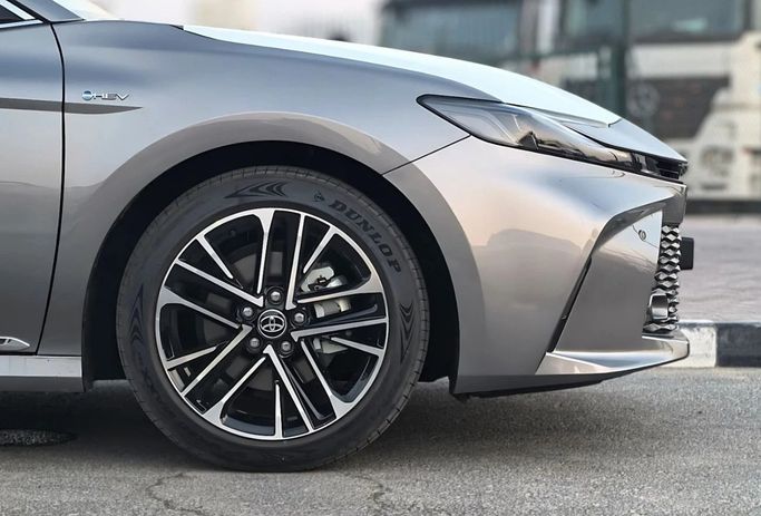 The 2025 Toyota Camry VIII (XV70) Facelift in a sleek grey finish blends efficiency with refined comfort, powered by a 2.5-liter hybrid engine producing 178 hp and paired with a smooth CVT and all-wheel drive for confident performance in varied conditions. Its GCC-spec build emphasizes practicality and reliability, while the hybrid drivetrain prioritizes efficiency without compromising responsiveness. Inside, the sedan offers thoughtful space and modern connectivity, aiming for a quiet ride and straightforward control layout that suits daily use and longer journeys alike. T