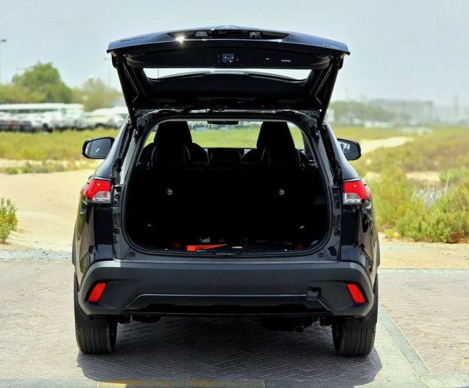 New 2025 Toyota Corolla Cross, generation I, in a sleek black finish, pairs practical SUV utility with a refined hybrid drive. Its 2.0-liter hybrid engine delivers 196 hp and is paired with a smooth CVT in front-wheel drive, offering steady, responsive performance and efficient everyday use. The five-door SUV embraces GCC specifications to suit regional needs, while the clean, modern silhouette and comfortable interior emphasize practical design and quiet ride. Inside, you’ll find a balanced cabin focused on user-friendly technology and everyday comfort, with adaptable spac