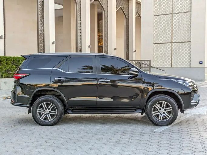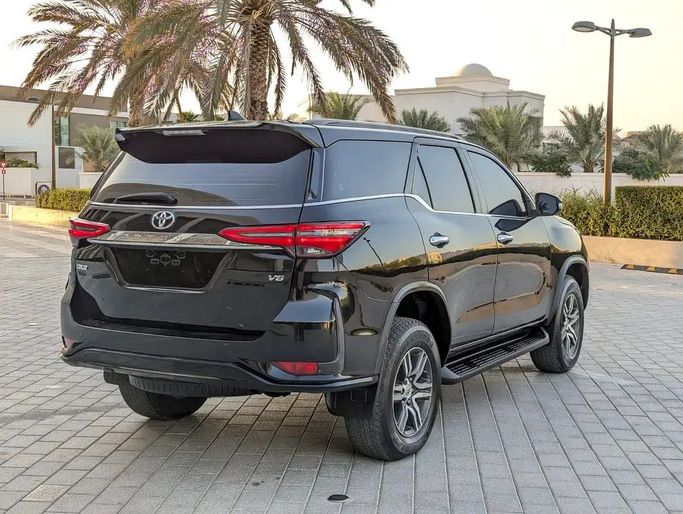 The 2021 Toyota Fortuner II Facelift is a black 5-door SUV with a powerful 4.0-liter petrol engine delivering 238 hp and smooth automatic transmission, paired with all-wheel drive for confident performance across terrains. With only one owner and GCC specifications, this used Fortuner shows careful maintenance and solid reliability, while its spacious interior and practical design emphasize comfort on long trips and everyday use. The exterior’s bold lines are complemented by a refined cabin that blends durable materials with modern touches, making it well-suited for family