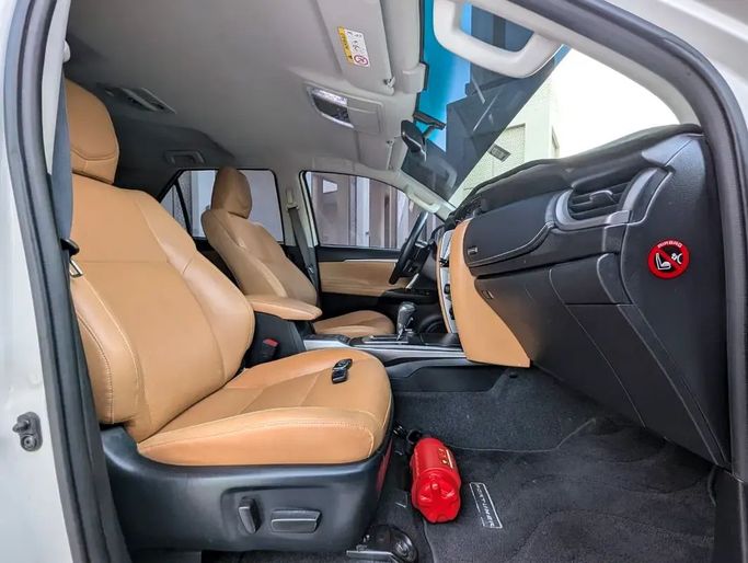 For sale: 2022 Toyota Fortuner VXR , a premium SUV in perfect condition with GCC specs. This powerful vehicle features a 4.0 L V6 petrol engine delivering 239 hp, paired with a 6-speed automatic transmission and 4WD capabilities, ensuring a seamless driving experience. The Fortuner VXR can comfortably accommodate 7 passengers , boasting luxurious beige leather upholstery. With only 57728 km on the odometer Key features include: • Advanced Parktronic with front and rear sensors and a 360° camera for safe parking. • Blind-spot monitoring system for enhanced safety. • Keyle