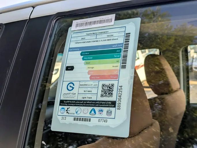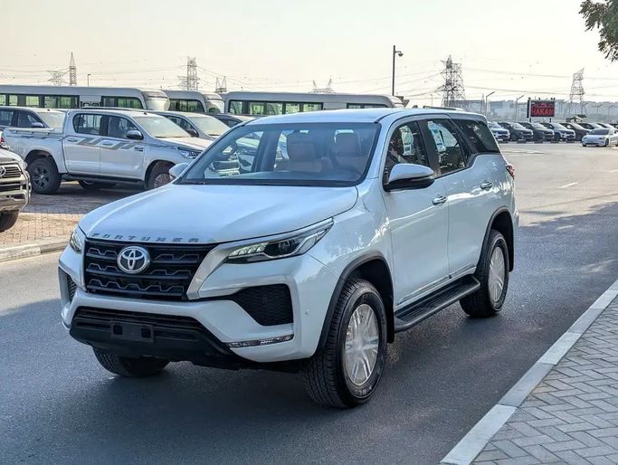 2023 Toyota Fortuner 2500 - 2999 cc 4 cylinders 100 - 199 HP -------------------------------------------- GCC Specs 1. White with Fabric Interior 2. Rear Parking Sensors 3. Bluetooth System 4. Rear View Camera 5. Cruise Control 6. Tiptronic Gears 7. Park Assist 8. Side Steps 9. Wireless charging