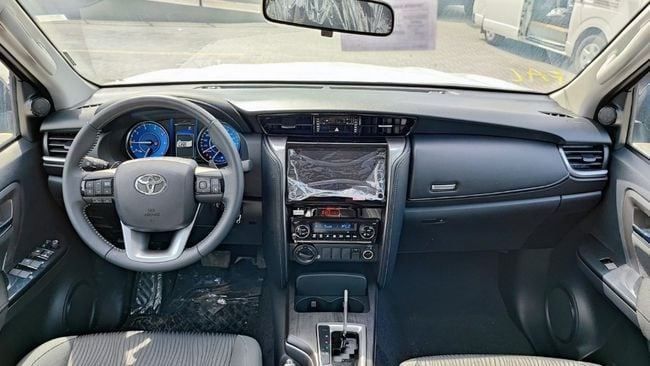New 2024 Toyota Fortuner II Facelift, a five‑door SUV in black, pairs a practical 2.4‑liter diesel with 150 hp to deliver steady everyday performance. An automatic transmission with rear‑wheel drive supports smooth highway cruising while keeping the layout simple and efficient. The II Facelift brings sharper styling, a durable interior, and flexible seating with smart storage for everyday tasks. GCC‑spec tuning ensures the model meets regional needs while upholding Toyota’s reputation for reliability. With its balanced ride, generous cargo space, and modern tech, this Fortu