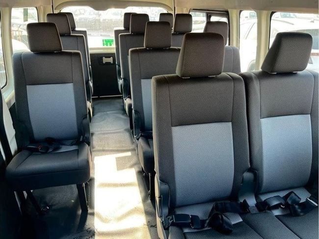 TOYOTA HIACE HIGH ROOF 3.5L PETROL 13 STSR MODEL 2024 M/T Petrol ENGINE: 3.5L, V6, 24 VALVE DOHC, VVT-i TRANSMISSION: 6-Speed Manual FUEL TANK CAPACITY: 65 Liter SEATING CAPACITY: 13 / FRONT SEATS FOR 2 PEOPLE (SEPARATED) FRONT & REAR AIR CONDITIONING FABRIC SEATS STEERING WHEEL CONTROLS- (AUDIO/ TELEPHONE) CENTRAL & POWER DOOR LOCKING DUAL AIRBAGS REAR FOG LAMP REAR WINDOW WIPER REAR WINDOW DEFOGGER