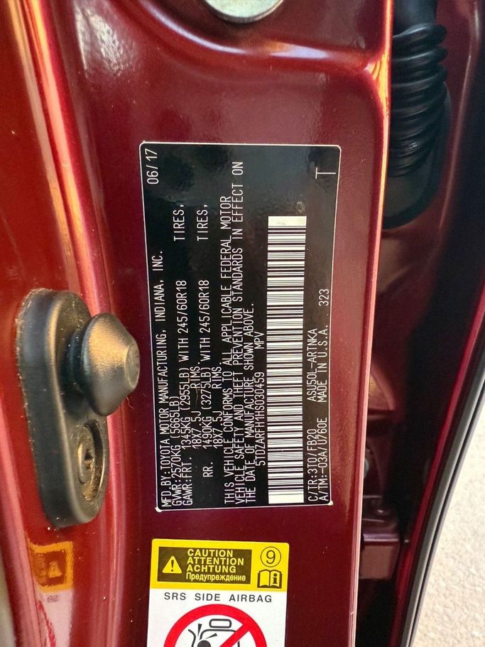 2017 TOYOTA HIGHLANDER LE KEY START 2.7/V4 US SPEC
