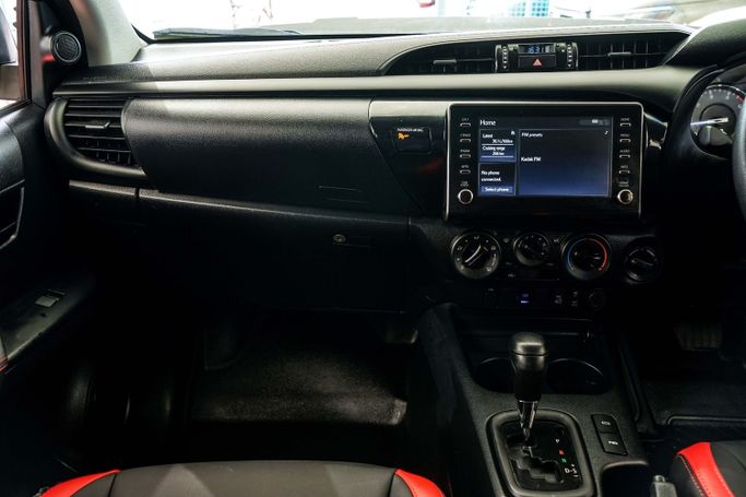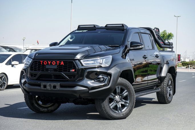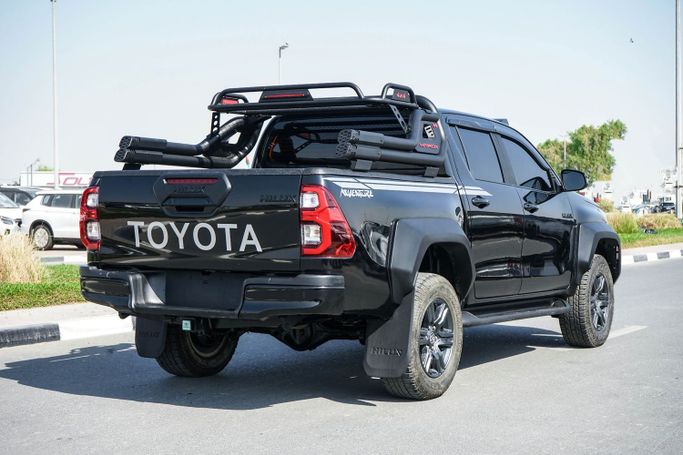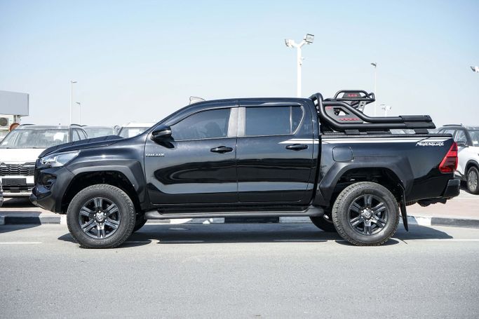 This 2023 Toyota Hilux VIII double cab in black combines practical versatility with reliable performance. It is powered by a 2.8-liter turbodiesel delivering 177 hp, offering solid torque for highway driving and payloads, and paired with an automatic transmission and all-wheel drive for stable traction across varied conditions. With 33,400 km on the clock and a single prior owner, it shows a light touch of wear and stands ready for daily use and practical tasks. The double cab layout provides space for four and a flexible cargo bed for tools and gear, while the cabin uses d