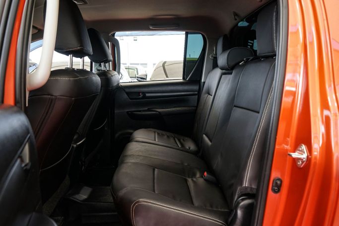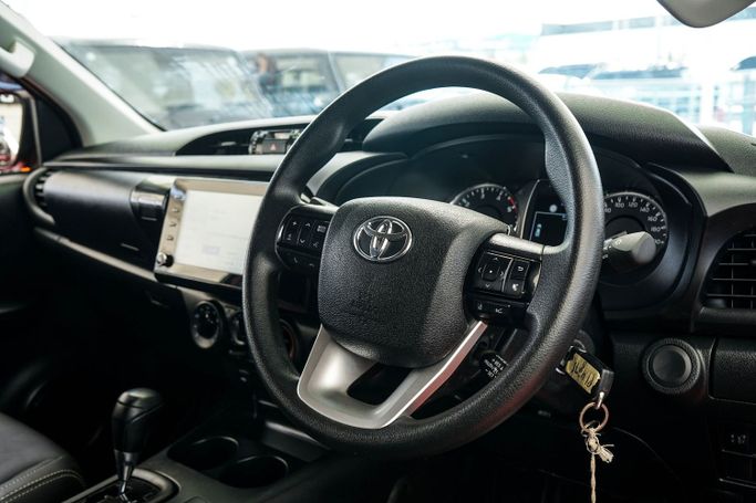 This 2024 Toyota Hilux VIII, in a bold orange, is a practical double-cab pickup that blends reliability with everyday usability. It runs on a 2.8-liter diesel engine producing 177 hp, paired with an automatic transmission and all-wheel drive for steady performance in varied conditions. The orange exterior adds a distinctive touch, while the cabin provides comfortable seating and durable materials suited to regular use. With a single prior owner and just over 20,000 kilometers, it offers a well-kept history and strong versatility for work-related tasks and weekend adventures