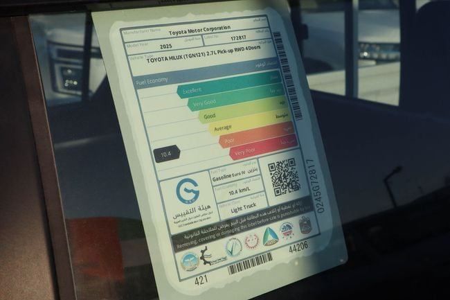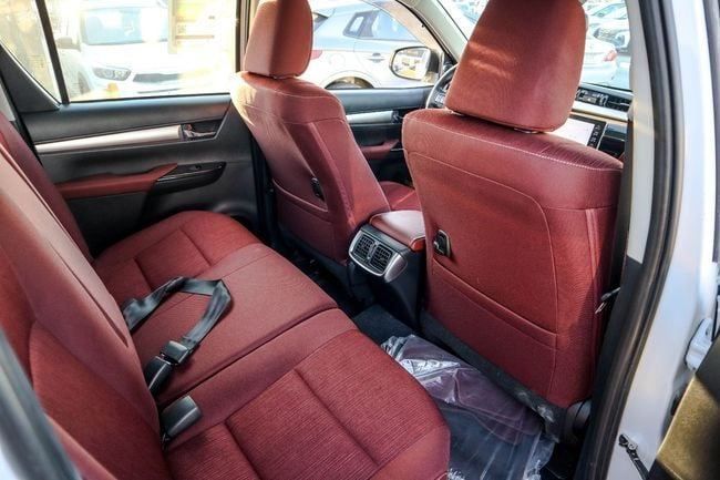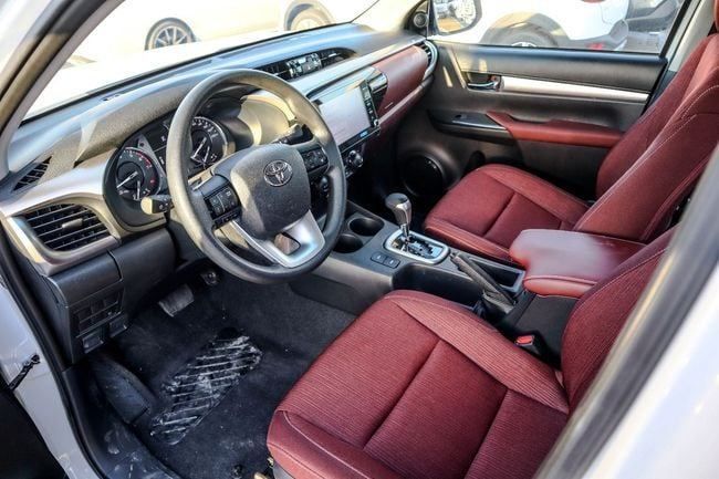 Introducing the 2025 Toyota Hilux VIII, a new double-cab pickup finished in white. This GCC-spec model pairs a 2.7-liter petrol engine producing 166 hp with an automatic transmission and rear-wheel drive, delivering steady performance for daily driving and light work. The crew cabin comfortably seats five, while the practical cargo bed provides versatile space for gear and projects. With an odometer reading around 23 km, it feels fresh and ready for everyday use. Its design blends clean lines with a robust, practical silhouette, reflecting the Hilux’s durable, work-ready ch