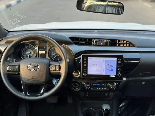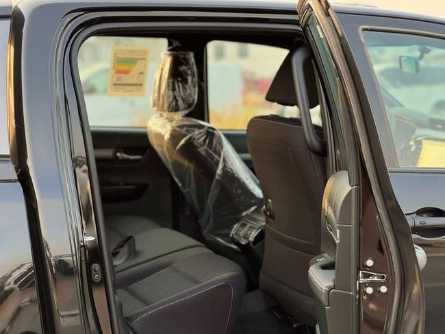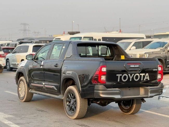 Toyota Hilux Adventure V6 Introducing the 2025 Toyota Hilux VIII Facelift in black, a new double-cab pickup with GCC specifications that suits both daily needs and tougher tasks. Power comes from a 2.7-liter petrol engine delivering 166 horsepower, paired with an automatic transmission and all-wheel drive for steady response and confident handling in a range of conditions. The crew-cab layout offers ample space for five and a practical cargo bed, while the modern refinement and updated styling of the facelift bring a contemporary feel without sacrificing the proven durabili