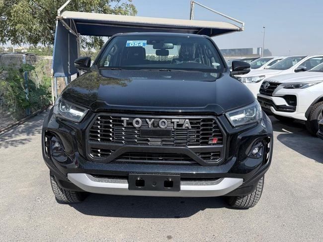 HILUX GR SPORT 2.8L AT 2025 BLACK DIESEL (EXPORT ONLY) New for 2025, the Toyota Hilux VIII Facelift presents a robust, versatile double-cab pickup in a sleek black finish. Under the hood sits a 2.8-liter diesel that delivers around 200 hp, paired with an automatic transmission and all-wheel drive for steady performance and confident traction in a range of conditions. The GCC-spec version is tuned for regional requirements, ensuring compatibility with local infrastructure and service networks. Inside, the cabin emphasizes practicality and comfort with space for five and a th