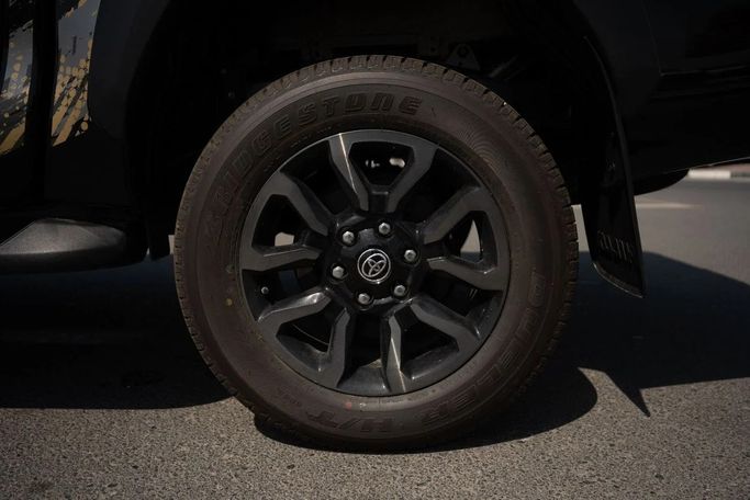 Toyota Hilux Adventure 2026 (4.0L, Petrol, 4WD, Double Cab, Automatic, Black exterior & interior) with all details including tire specifications. Engine & Performance Engine: 4.0L V6 Petrol Horsepower: 235 hp Torque: 375 Nm Drivetrain: 4x4 Transmission: 6-speed automatic Top speed: 170 km/h 0–100 km/h: Around 12.8 seconds Fuel tank capacity: 80 liters Fuel consumption: Approx. 7.8 km/l Dimensions & Measurements Length: 5325 mm Width: 1855–1900 mm (depending on source) Height: 1815 mm Wheelbase: 3085 mm Cargo bed capacity: 1150 liters Seating