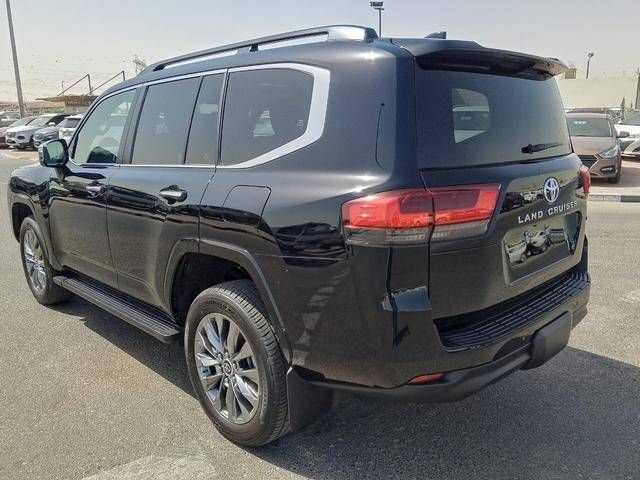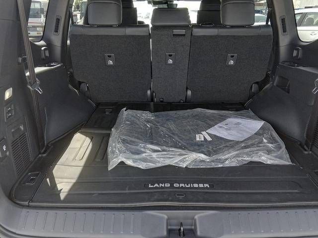 New 2025 Toyota Land Cruiser 300 Series in a deep black finish blends rugged off-road ability with refined on-road comfort. Its 3.3-liter diesel delivers 309 horsepower, paired with an automatic transmission and all-wheel drive to provide confident performance across varied conditions. Inside, the cabin combines durable materials with a quiet, comfortable ride and modern technology designed for ease of use on longer trips. Practical design details, ample cargo space, and thoughtful storage support everyday versatility, while the chassis and suspension balance stability with