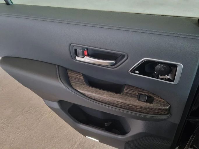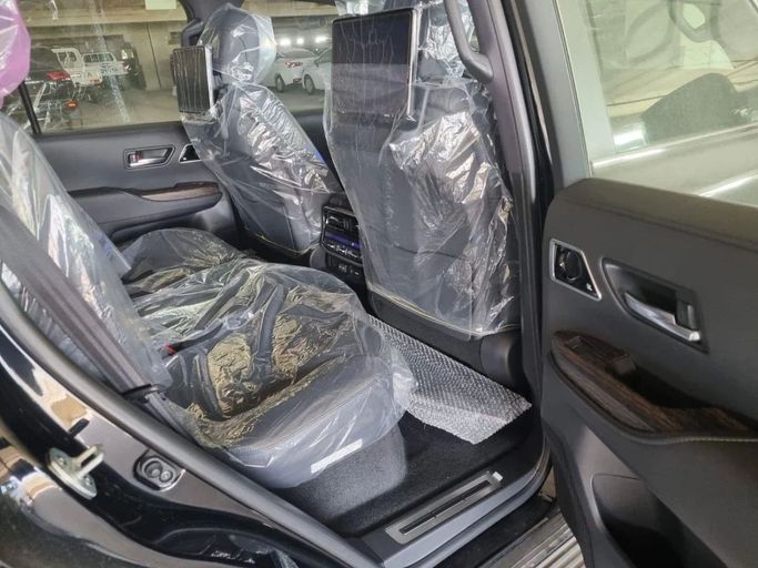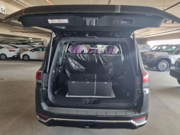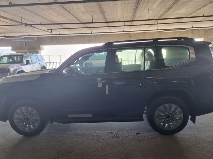The 2025 Toyota Land Cruiser 300 Series in black is a new, European-spec five-door SUV powered by a 3.4-liter twin-turbo petrol engine delivering 415 hp, paired with an automatic transmission and all-wheel drive. The Twin Turbo setup offers immediate response and strong mid-range torque, while AWD provides confident handling across surfaces, from highway stretches to off-road trails. Inside, the cabin emphasizes comfort with supportive seating, a refined ride, and modern safety and connectivity features that align with Toyota's reputation for reliability. With its rugged he