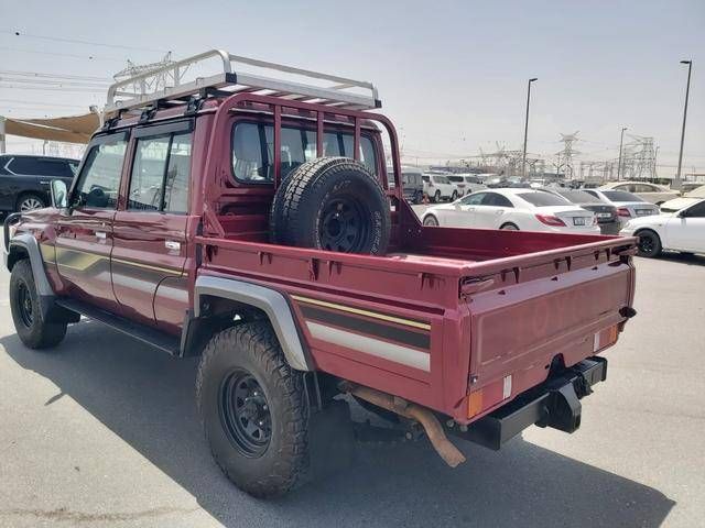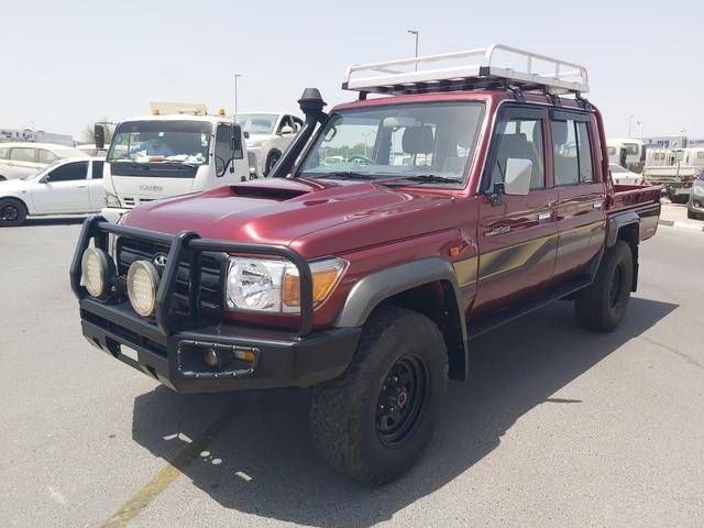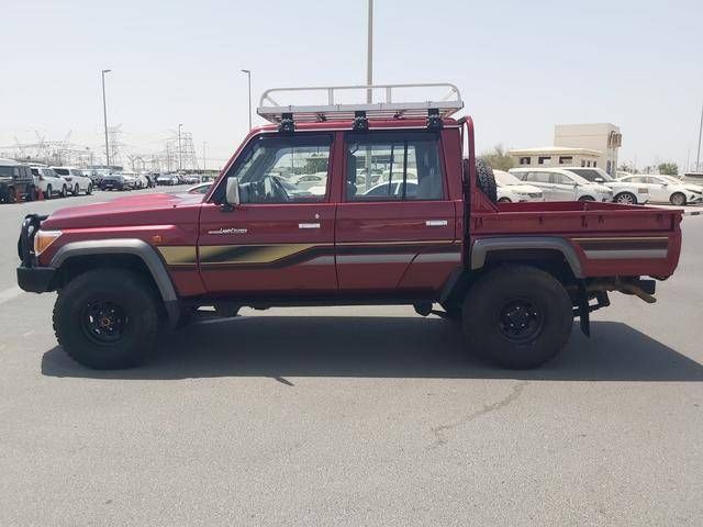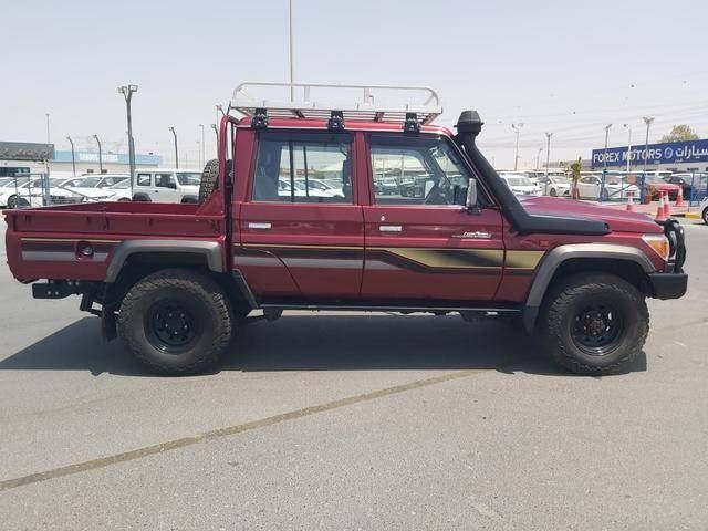 This 2020 Toyota Land Cruiser 70 Series Facelift 1 double-cab pickup in Burgundy is powered by a 4.5-liter diesel delivering 202 hp, paired with a manual transmission and all-wheel drive. With a single owner and 54,500 km on the clock, it shows light use for its age while offering the reliable durability the model is known for. The double-cab layout provides practical seating and cargo space for daily tasks, while the drivetrain supports strong off-road capability and steady on-road performance. Built for longevity, it combines straightforward controls, durable materials, a
