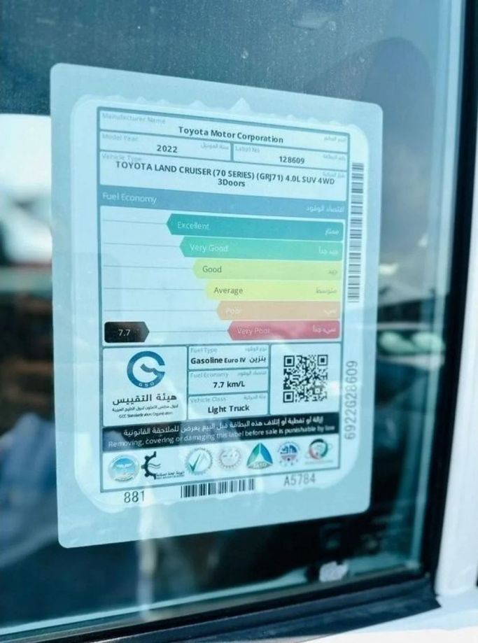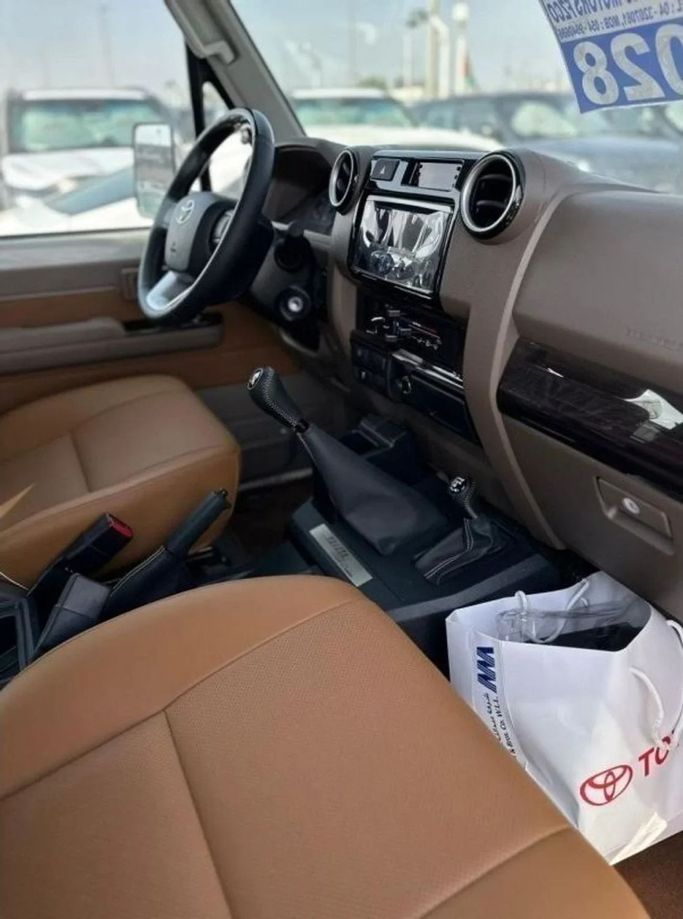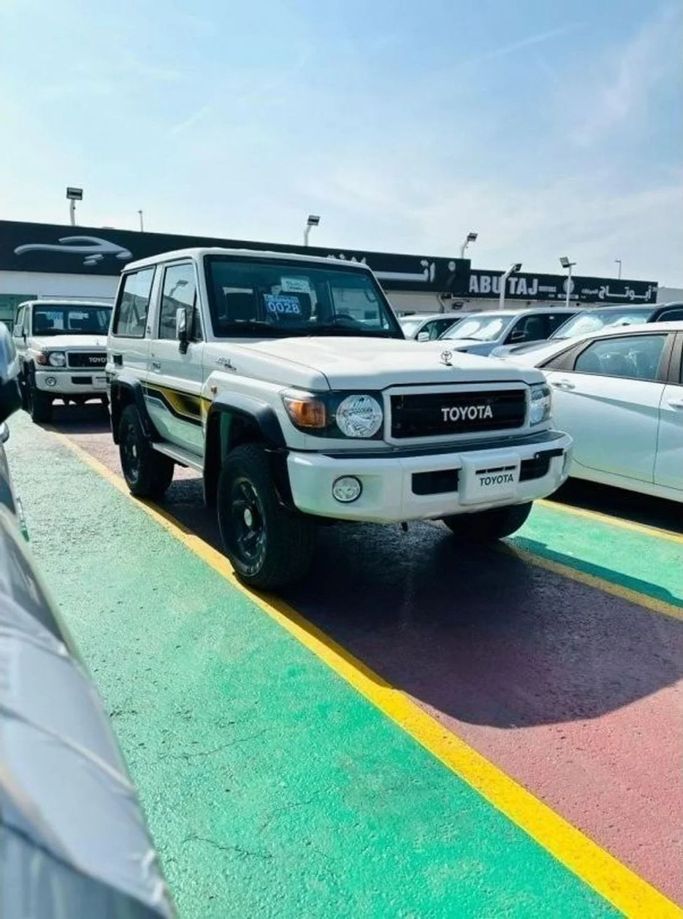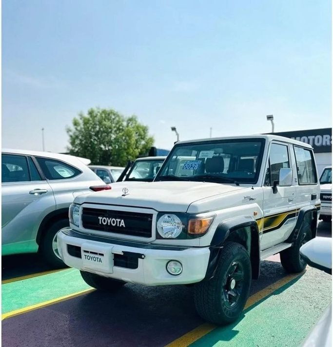 New 2022 Toyota Land Cruiser 70 Series Facelift 1 is a rugged three-door SUV finished in white. It is powered by a 4.0-liter petrol engine delivering 228 hp, paired with a manual transmission and permanent all-wheel drive for direct, confident performance on and off the road. This GCC-spec model is built to meet regional conditions, with durability-focused components and cooling tuned for hot climates. The facelift brings refreshed styling while preserving the practical, no-nonsense interior that suits long trips and demanding terrain. With its compact footprint, sturdy cha
