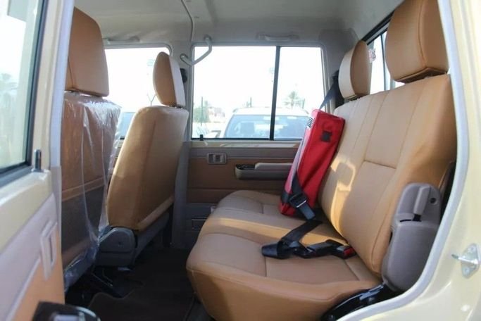 New for 2023, the Toyota Land Cruiser 70 Series Facelift 1 is a rugged double-cab pickup that blends practical capability with a refined, no-nonsense interior. It combines a 4.0-litre petrol engine delivering 228 hp with a manual transmission and all-wheel drive for dependable performance on and off pavement. The facelift brings refreshed exterior styling and practical interior updates, while the durable materials and straightforward controls emphasize lasting comfort and ease of use. In a beige finish, the vehicle presents a timeless, utilitarian presence that suits both w