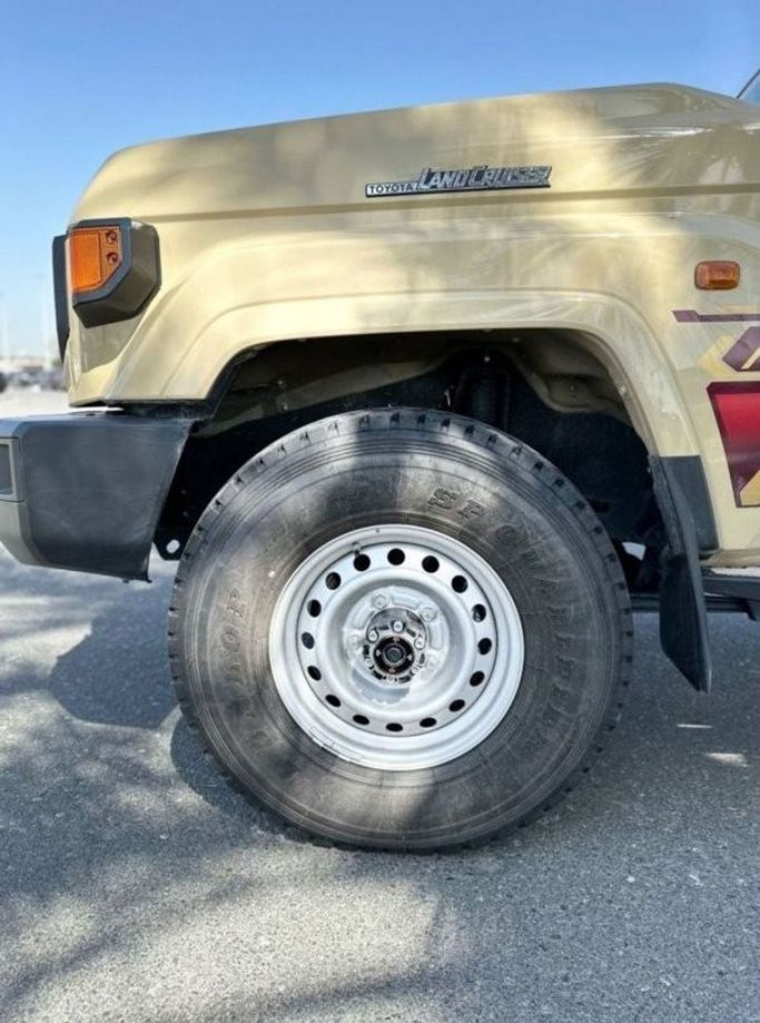 New 2024 Toyota Land Cruiser 70 Series Facelift 2 single-cab pickup, finished in beige, blends rugged capability with everyday practicality. The 4.0-liter petrol engine delivers 228 hp and pairs with an automatic transmission and all-wheel drive to offer confident performance across varying terrain while keeping payload and reliability in mind. The single-cab configuration prioritizes cargo space and straightforward maintenance, making it a durable workhorse for demanding tasks. GCC specifications ensure compatibility with local fuel and regulations, while a durable and fun