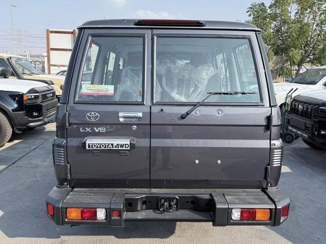 Toyota LC76 4.0L Petrol A/T Full Option 2025 Export Only New 2025 Toyota Land Cruiser 70 Series Facelift 2 is a 5-door SUV in grey, built for GCC roads with a dependable blend of capability and everyday practicality. It packs a 4.0-liter petrol engine delivering 228 hp, paired with an automatic transmission and all-wheel drive to provide confident performance and steady traction across varied terrain. The facelift 2 brings refreshed styling cues and a straightforward, durable interior designed for long-term comfort and easy operation, staying true to the Land Cruiser’s repu