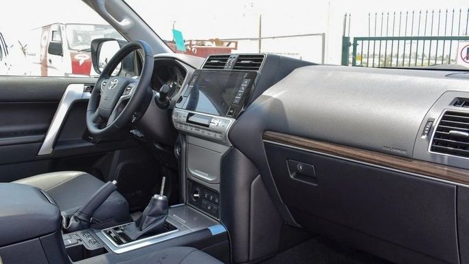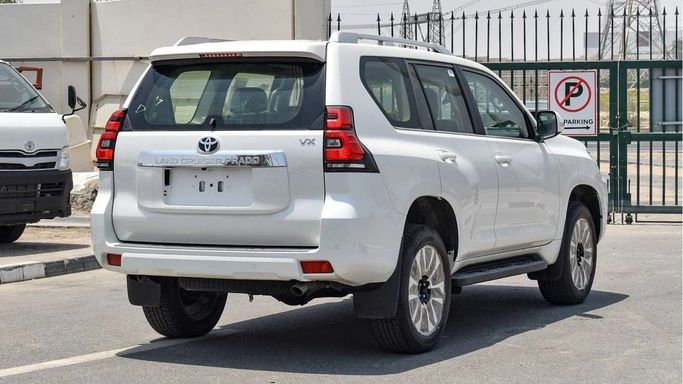 Brand new Toyota Prado VX 4.0L V6 for sale in Dubai. White 2023 model, available at Golzar Auto FZE. This car has automatic transmission, 6 cylinder engine, 18″ wheels and black interior. GCC specs.