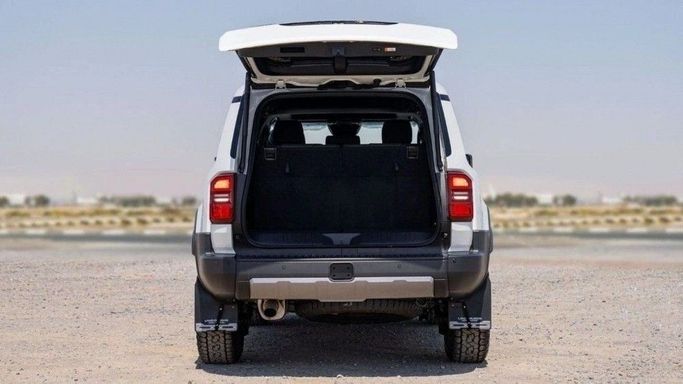 The Toyota Land Cruiser Prado 250 Series in white is a new 2025 model designed as a capable five‑door SUV. It is powered by a 2.8‑litre diesel engine producing 204 horsepower, paired with an automatic transmission and all‑wheel drive for balanced performance across highways, gravel, and rougher terrain. The powertrain offers strong low‑end torque for confident starts and steady cruising, while the smooth automatic shifts contribute to a relaxed daily drive. Inside, the cabin blends durable, easy‑clean materials with comfortable seating, generous space for passengers and car