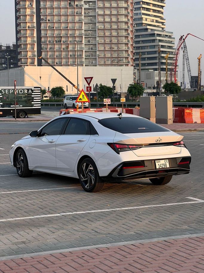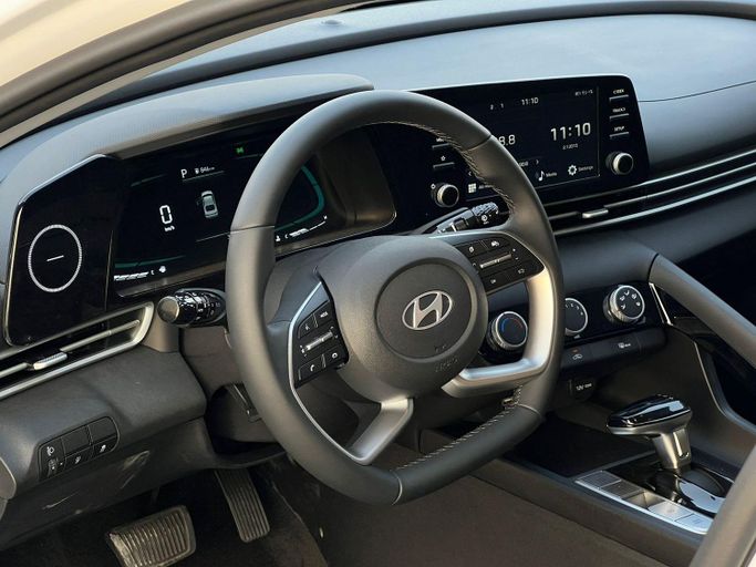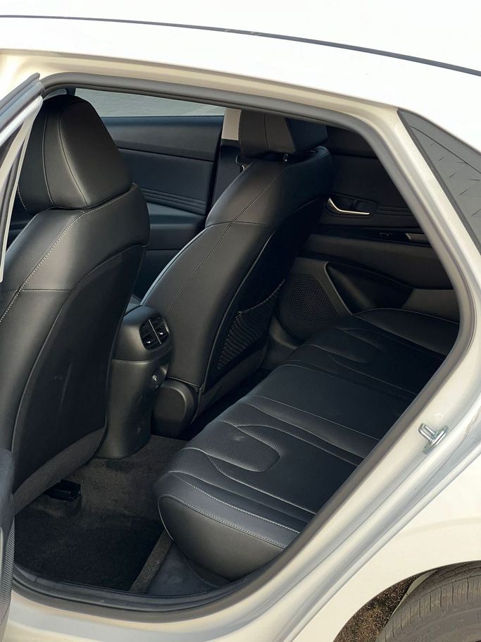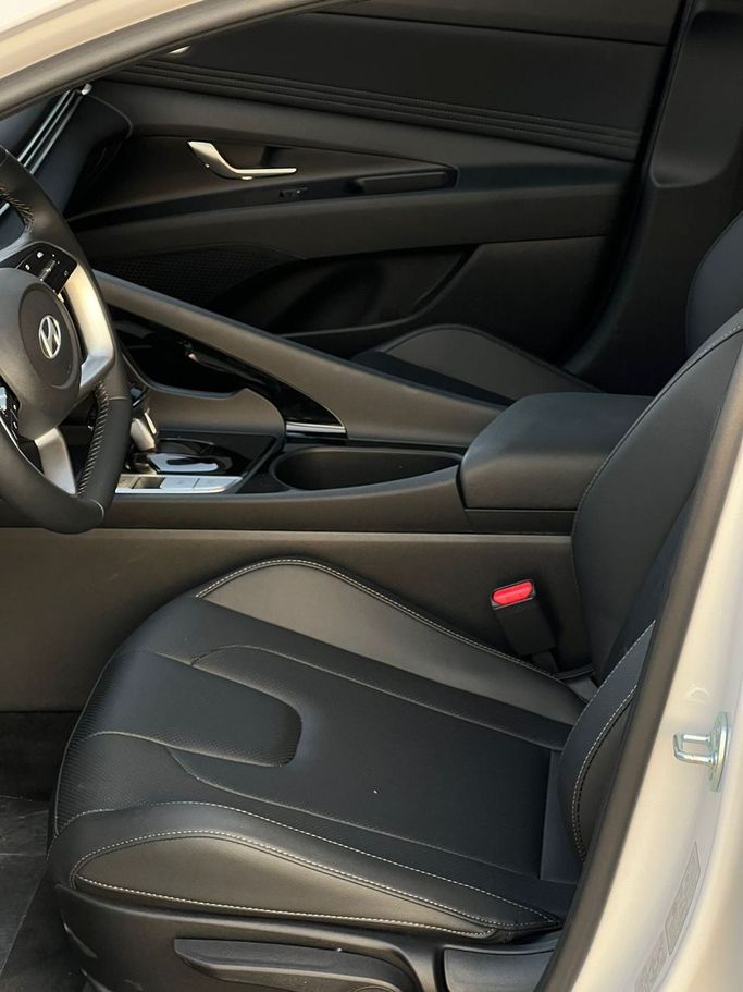 Hyundai Elantra VII CN7 Facelift 2024 года выпуска — современный седан в белом цвете с черным интерьером. 1.6-литровый двигатель мощностью 128 л.с. в сочетании с автоматической коробкой передач обеспечивает плавное движение и уверенное ускорение на городских дорогах и трассе, а передний привод упрощает управление в разных условиях. В салоне предусмотрено достаточно места для водителя и пассажиров: удобные сиденья, продуманная эргономика и качественные материалы подчеркивают аккуратный, современный стиль. Мультимедийная система и продуманная шумоизоляция создают комфортную а