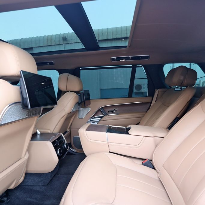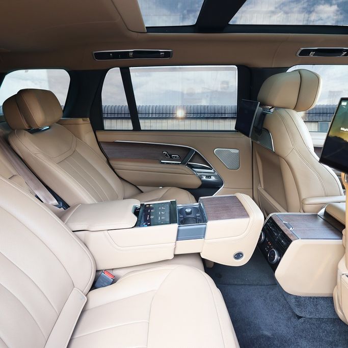 This car has 4 doors and seats up to 5 passengers. Land Rover Range Rover Vogue Autobiography Long 2023 Model year: 2023 Specifications: 1. Paddle Shift (Triptronic) 2. Leather Seats 3. SRS Airbags 4. Front & Rear Airbags 5. Front Air Bags 6. Seat Belt Reminder 7. Foldable Armrest 8. Chiller / Freezer 9. Climate Control Why hire the Land Rover Range Rover Vogue Autobiography Long? This 4 door SUV fits 5 passengers and 3 medium-sized bag(s). Features include Paddle Shift (Triptronic), Leather Seats, SRS Airbags, Front & Rear Airbags, Front Air Bags, Seat Belt Reminder, Fol