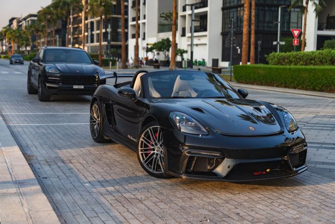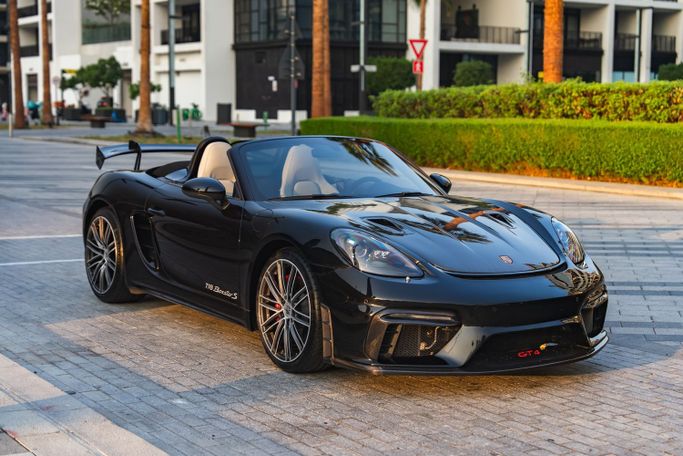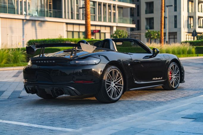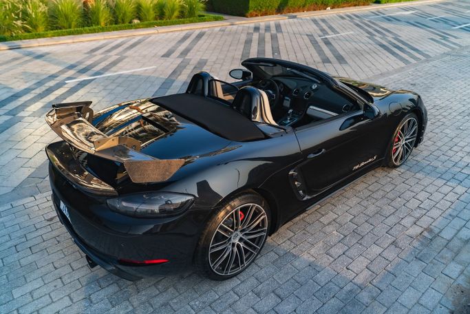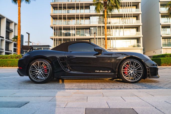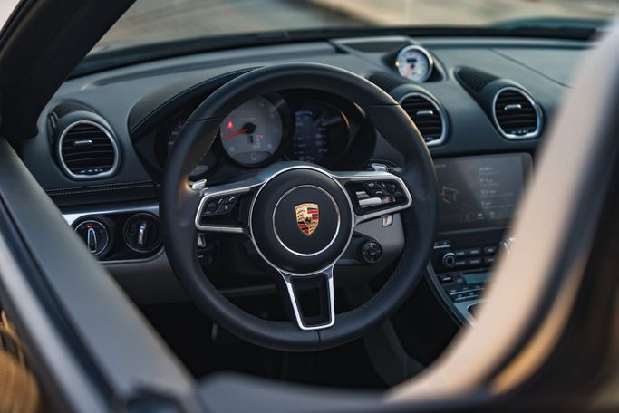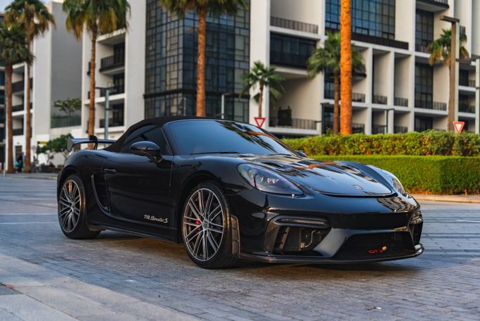 The 2024 Porsche 718 Boxster S Roadster from Royal Dream is a mid‑engine, rear‑wheel‑drive two‑seat convertible that pairs a 2.5‑liter turbocharged flat‑four with an automated manual transmission, delivering 350 horsepower. Its balanced chassis and precise handling translate to confident cornering and a responsive ride, while the fabric roof folds smoothly for open‑air driving. Exterior Black is paired with a White interior to create a clean, refined contrast that suits both everyday use and weekend escapes. Inside, supportive sport seats and a driver‑focused cockpit surrou