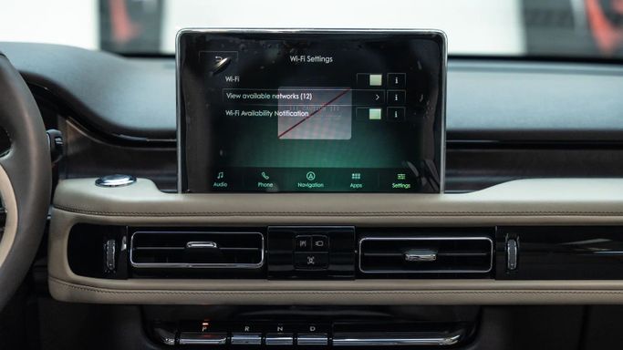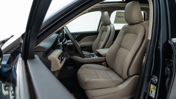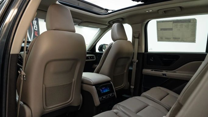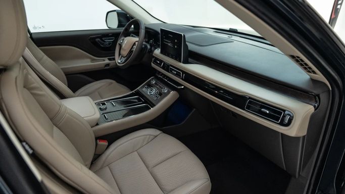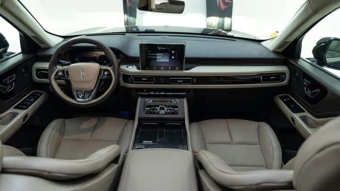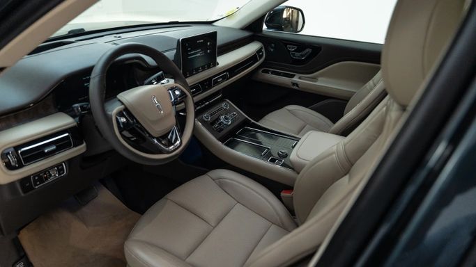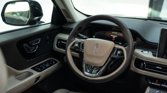 Lincoln Aviator Reserve ABS EBD VSA Electric hand brake Self-dimming interior mirror Navigation system Information screen Apple CarPlay and Android Auto Wireless charger Electric mirrors Rear air conditioning vents Middle support Cruise control Steering wheel controls Bluetooth Middle screen Heated mirrors Rain sensor Heated steering wheel Separate air conditioning control Voice commands Autohold Leather-wrapped steering wheel Welcome lights Ambient lighting Driver airbag Passenger airbag Fog lights Side air curtain