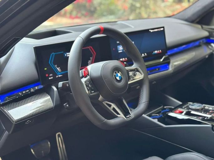 Engine & Performance: • Engine: 4.4L V8 Twin-Turbo + Electric Motor (Plug-in Hybrid) • Total Power: ~717 HP • Total Torque: ~1,000 Nm • 0–100 km/h: around 3.5 seconds • Drivetrain: AWD (M xDrive) • Transmission: 8-Speed Automatic (M Steptronic) • Electric driving mode for short city trips • Selectable driving modes: Comfort / Sport / Sport Plus ⸻ Key Details: • Model: 2025 BMW M5 • Mileage: 13,000 KM • Exterior Color: Dark Navy Blue • Interior: Full M5 Interior (Premium leather with M Sport design) • Specs: Europe Specs • Powertrain: Plug-in Hybrid • Condition: Like New