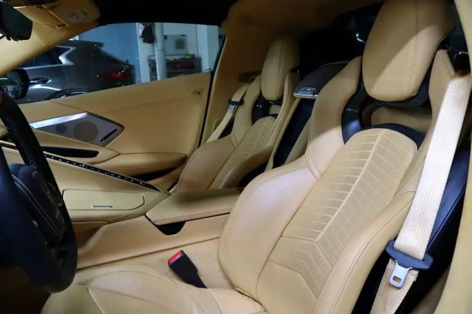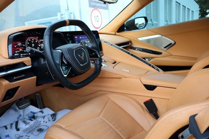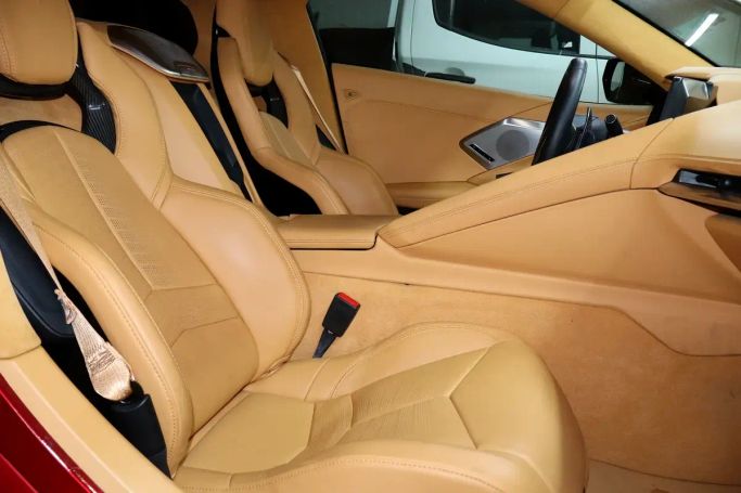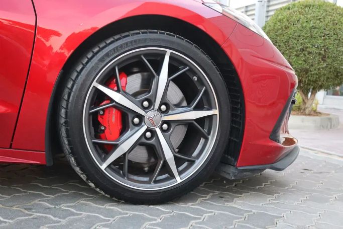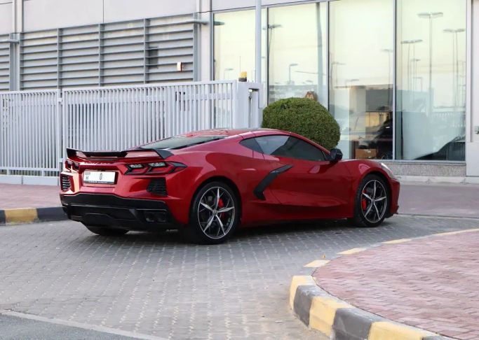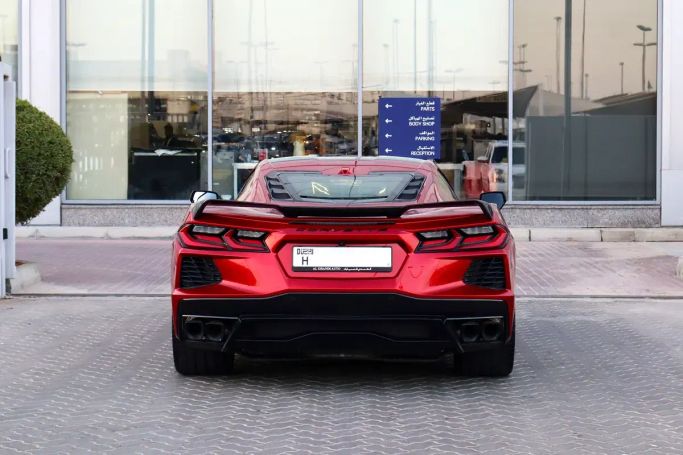 Chevrolet Corvette C8 3LT – AED 358,000 2023 Chevrolet Corvette C8 3LT Mileage: 9,000 km Color: Red (Rosso Corsa) Specifications: • Engine: 6.2L V8 • Drivetrain: Rear-Wheel Drive (RWD) • Transmission: 8-speed dual-clutch automatic Interior Features: • Seats: Premium leather upholstery with power-adjustable, heated, and ventilated seats • Infotainment: 8-inch touchscreen, premium audio system, Apple CarPlay, Android Auto Comfort & Convenience: • Climate Control: Dual-zone automatic climate control • Seats: Memory settings for driver’s seat • Steering Wheel: Leath