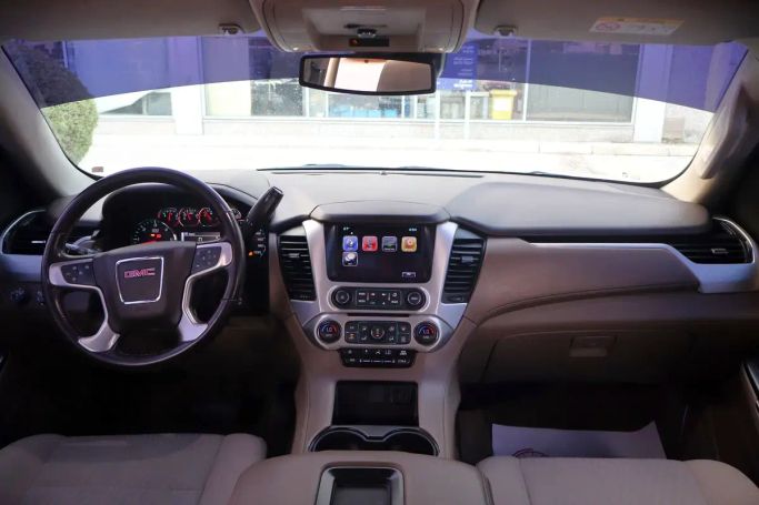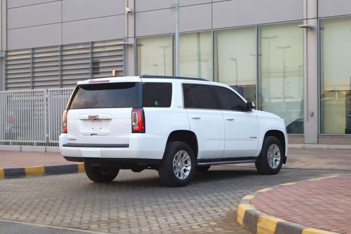 2020 GMC Yukon, IV generation (GMT K2UG), in white, is a 5-door full-size SUV powered by a 5.3-liter V8 delivering 355 horsepower, with an automatic transmission and all-wheel drive. In GCC-spec trim with a single previous owner, it balances strong capability with everyday comfort. The AWD setup handles varying road conditions with ease, while the spacious interior offers flexible seating and ample cargo space for family trips or practical loading. At about 174,000 kilometers, it shows typical wear for its age, yet the robust powertrain and solid chassis provide confident h