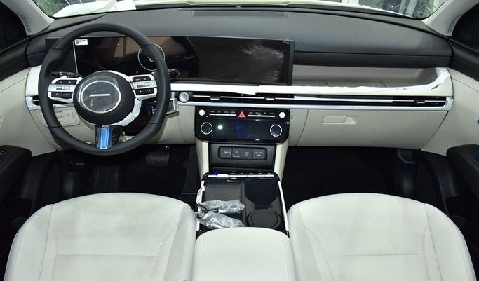 Hyundai Tucson 1.6L Turbo ( 2025 Model ) in Silver Color European Specs • Specifications • Exterior Color: Silver Interior Color: Beige Odometer: 100 KM Engine: 4 Cylinder Engine Transmission: Automatic Regional Specs: European Specs » 5 Seater SUV » Bluetooth » Cruise Control » Fog Lights » 2 Keys Available » Panoramic Roof » Traction Control » Paddle Shifters » Spoiler » Wireless Magnetic Mobile Charger » Apple CarPlay / Android Auto » Hill Descent Control » Drive Mode Control » Roof Rails » Rear View Camera » Side Airbags » Fabric Seats » Power Seats » Analog Clock »