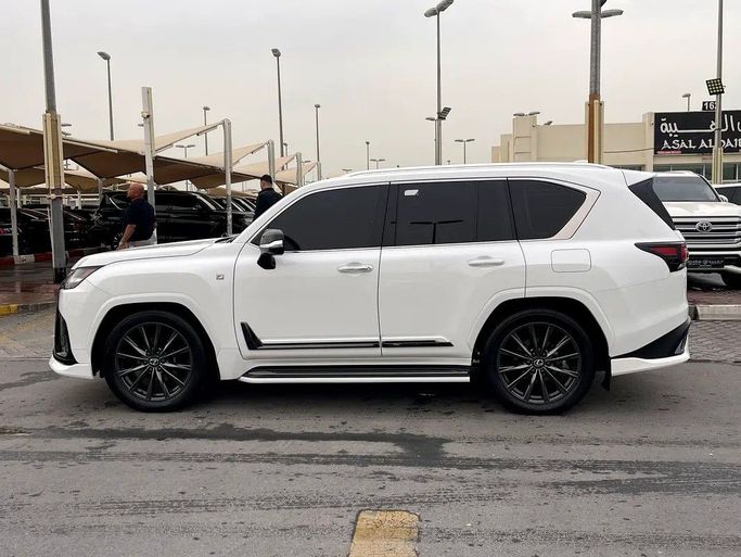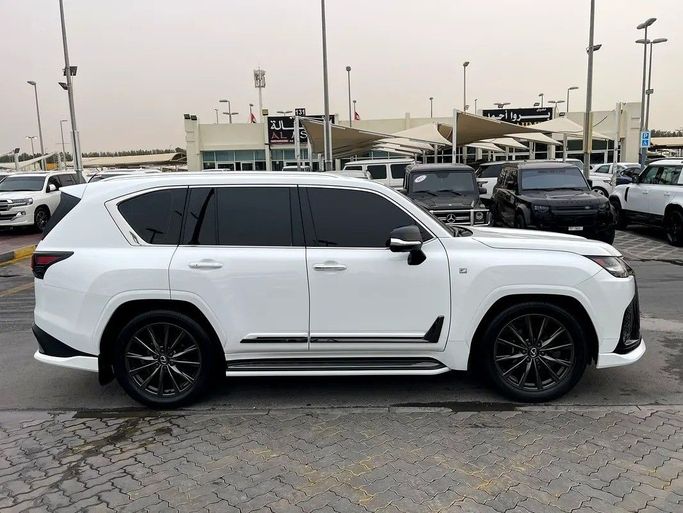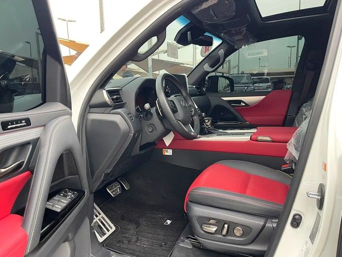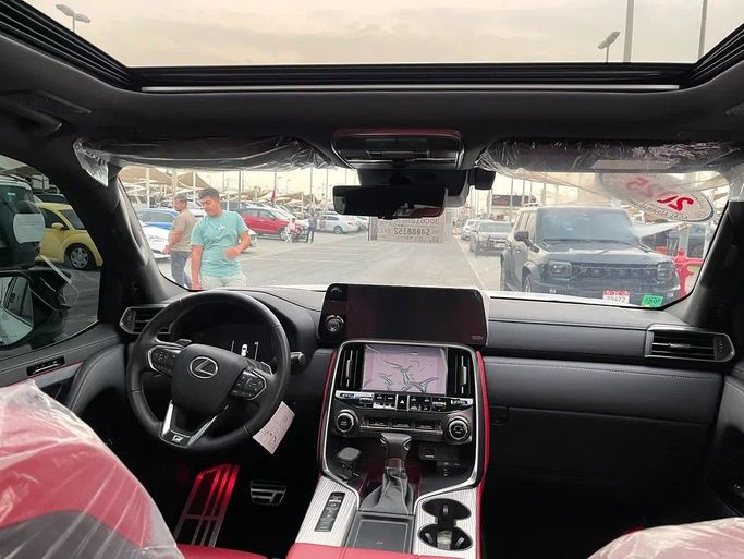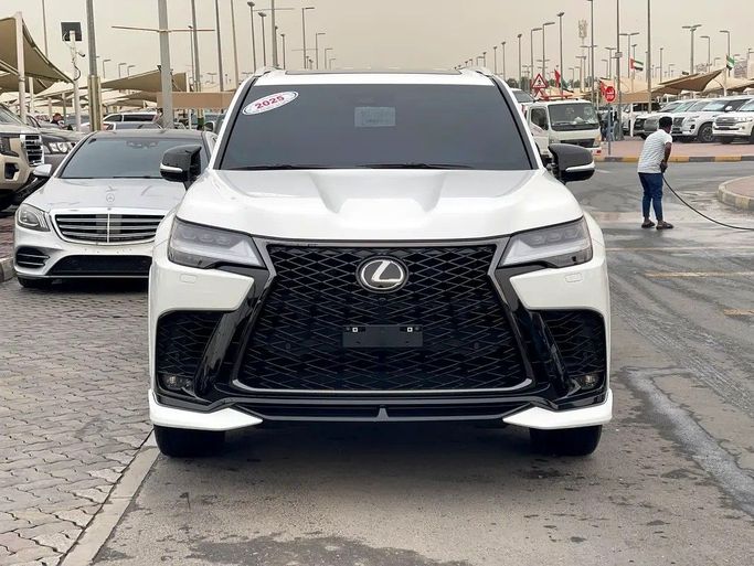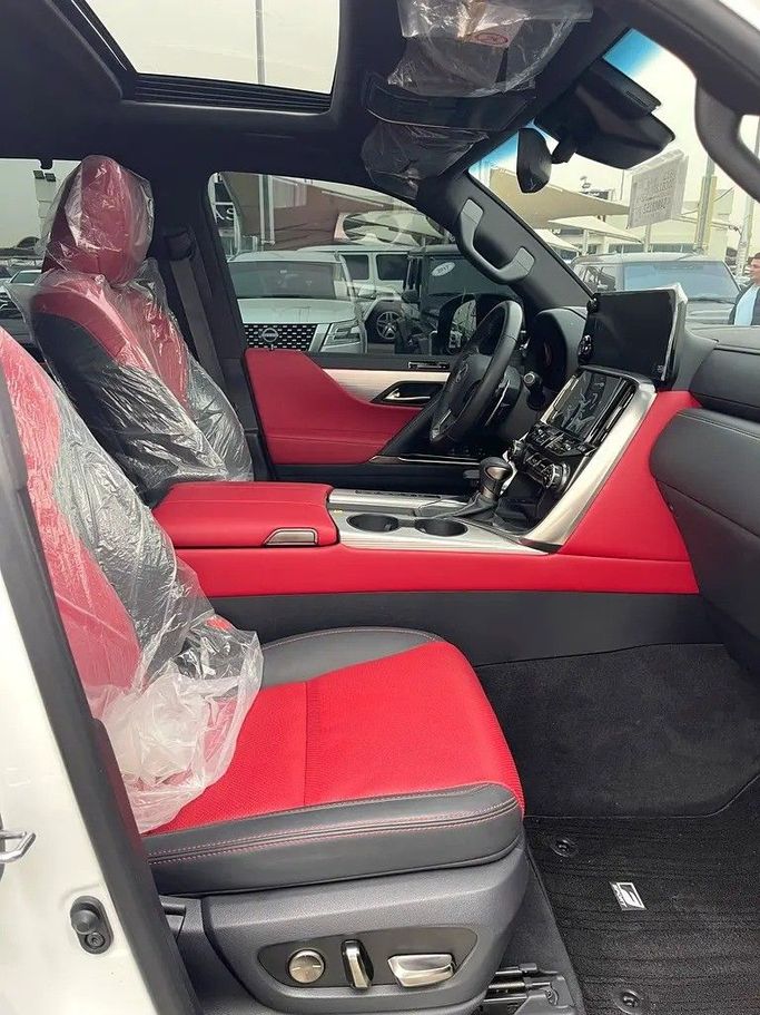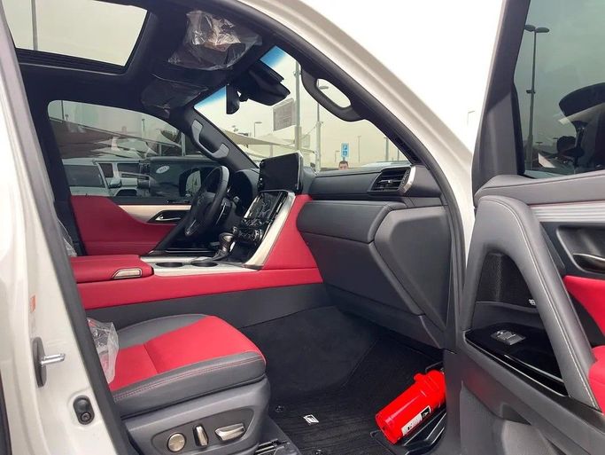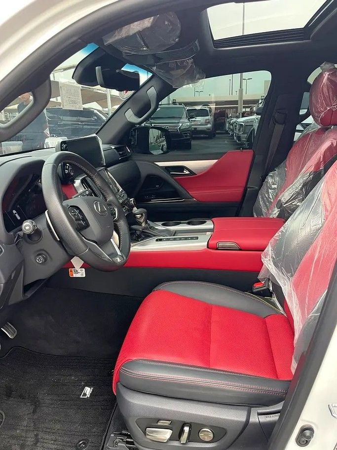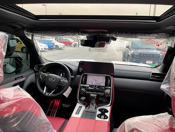 Lexus LX600, white F Sport, Gulf checks, dyeing agency under warranty. Features: - 4 Wheel Drive - 360 Camera - Alarm / Anti-Theft System - Adaptive Brake Lights - Anti-Lock Brakes (ABS) - All Wheel Drive - Attention Assist - Autonomous Emergency Braking (AEB) - Brake Assist (BA) - Blind Spot Monitor - AM/FM Radio - Touchscreen Display - Navigation System - Steering Wheel Audio Controls - Apple CarPlay - Wireless Charging - 12V Power Outlet(s) - Bluetooth - Head-Up Display (HUD) - Premium Sound System - Active Understeer Control (AUC) - Air Conditioning - Ambient Interior