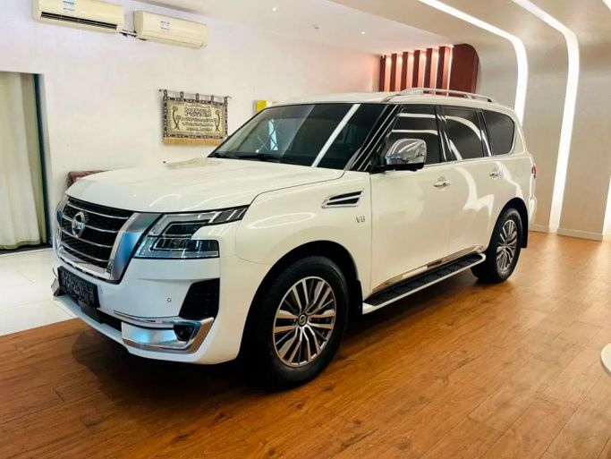Nissan patrol model 2021 v8 platinium full option full service hostory original paint very clean car نيسان باترول موديل 2021 بلاتينوم v8 فول اوبشن خمس كامرات رادار سيتات تبريد وتسخين واحد على واحد السياره تشييكات وكاله بالكامل وصبغ الوكاله وخاليه من الحوادث والصبغ شرط الفحص السياره موجوده في سوق الحراج الشارقه معرض اليمامه معرض رقم 03