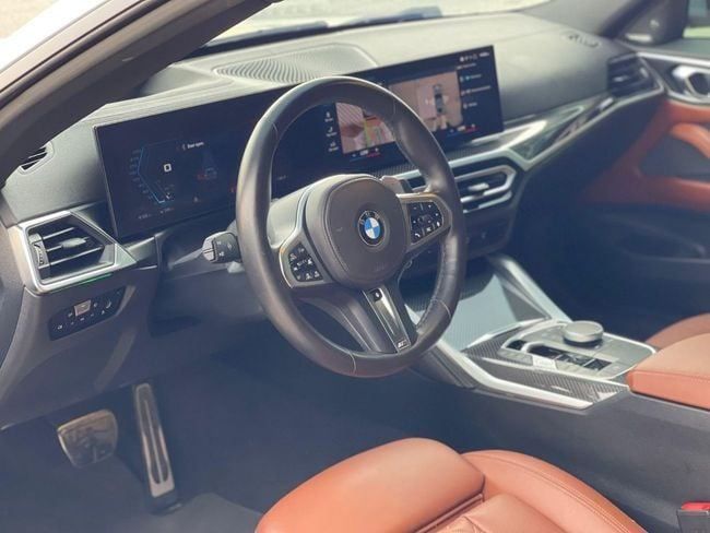 BMW M440i 2024 Model 3.0L V6 TURBO (B58) X-Drive 16000 Km only!!!!! M BROOKLYN Gray Color Beige leather with Carbon Fiber Interior trim finishers Korean imported In perfect condition Full Option (Sun roof _ 360 camera _ single curved (12.3” + 14.9”) big screen _ M active exhaust _ Head-up Display _ radar _ road assist _ Blind Spot _ self-barking _ adaptive LED with Laser Lights _ Carbon Fiber Interior trim finishers _ remote start _ approaching auto unlock _ M Sport brakes _ M Sport suspension _Drive modes (sport – Sport+) _ Ambient Light _ rims _ wireless charging _ Ap