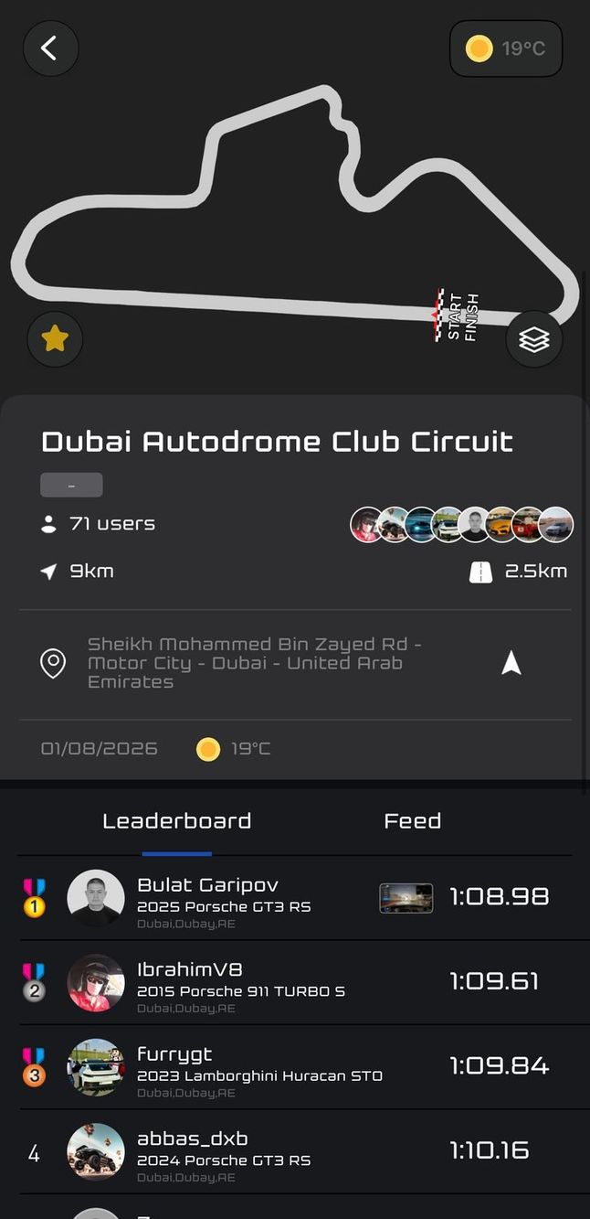 A small amateur session at Dubai Autodrome, using the Club Circuit layout. I managed a 1:08.98 lap — a solid working result for me at this stage. The track is short (around 2.5 km) and quite technical, which makes it great for learning: focusing on racing lines, braking points, and overall stability. The conditions were comfortable at about 19°C, w
